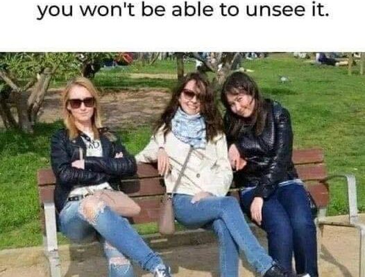 Is there something that doesn’t look right in this photo, or are three women simply sitting and smiling at the camera?