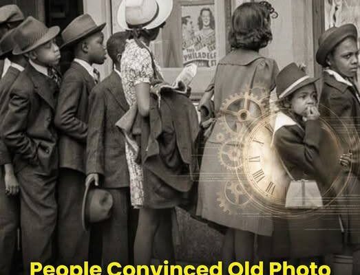 The picture shows children waiting outside a movie theater in Chicago. It offers a rare glimpse into a past era, yet amid the historical charm, the peculiar detail on the far right side is too captivating to ignore.