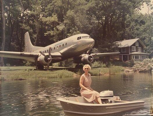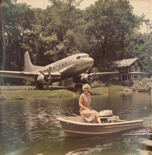 She deliberately landed the plane on her property with the nose facing a picturesque lake to ensure the stability during the renovation. Concrete was used to keep the tail in place and firmly anchor it.