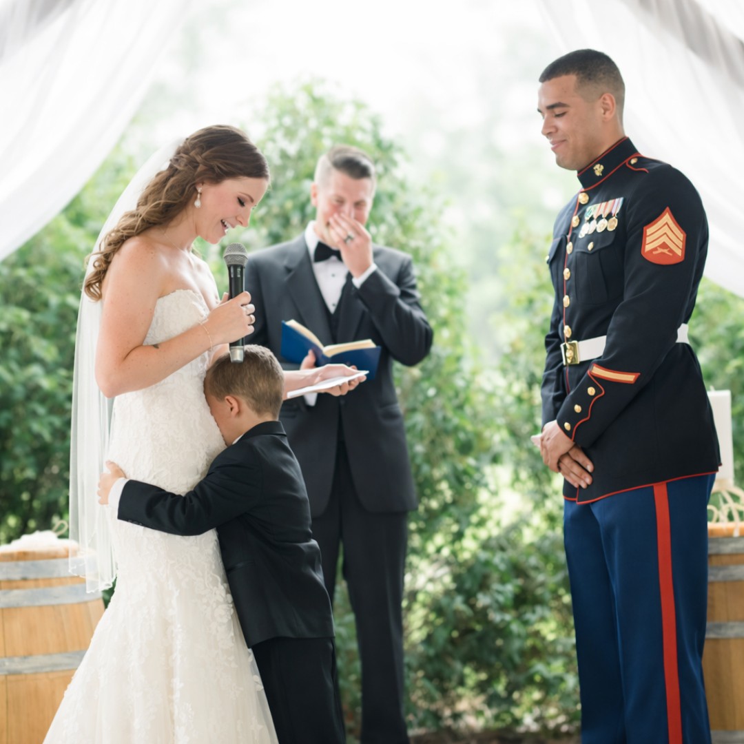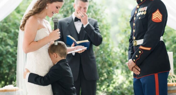 Guests arrived expecting the usual rhythm of a military wedding—formal, emotional, and meaningful. What they didn’t expect was for the ceremony to widen its focus from “husband and wife” to something bigger: a new family structure being formed in real time.