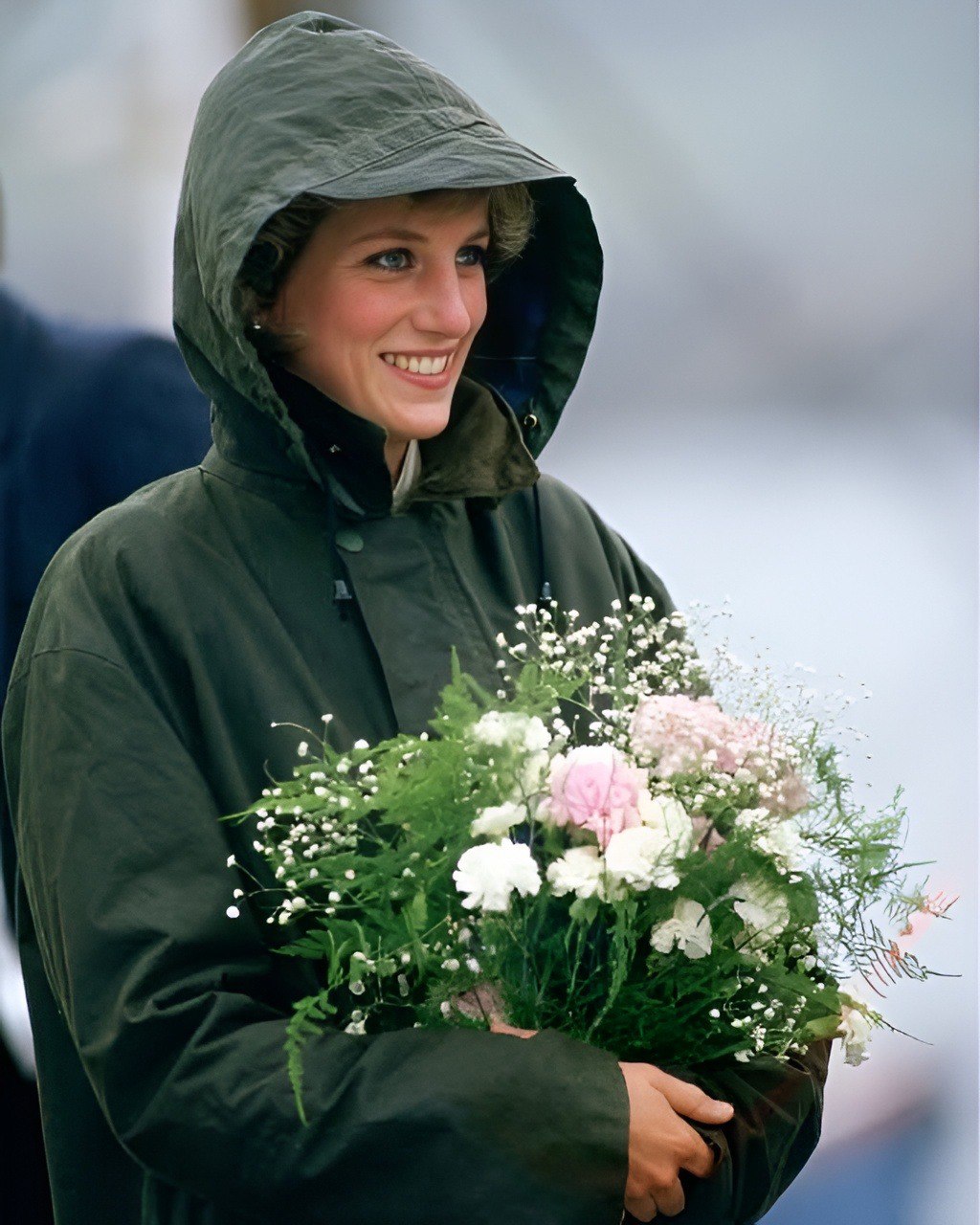 WESTERN ISLES, UNITED KINGDOM, 1985, Princess Diana In A Barbour-style Waxed Jacket With The Hood Up On A Rainy Day In The Western Isles Of Scotland (Photo by Tim Graham Photo Library via Getty Images)