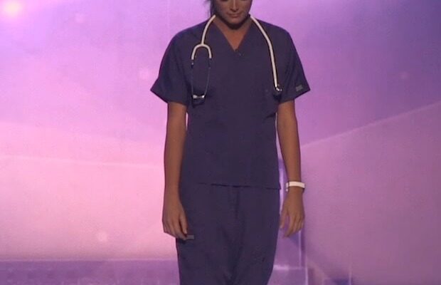 Behind her story was a message about compassion and human connection—values she believes are at the heart of her caregiving. Wearing her nursing uniform, Kelley looked like she had stepped right out of her hospital shifts, but that night, her role was larger than life. Her voice trembling slightly with emotion, she spoke about the dignity of caring for those who cannot care for themselves and the importance of empathy in a world that often rushes past the quiet pains of others.